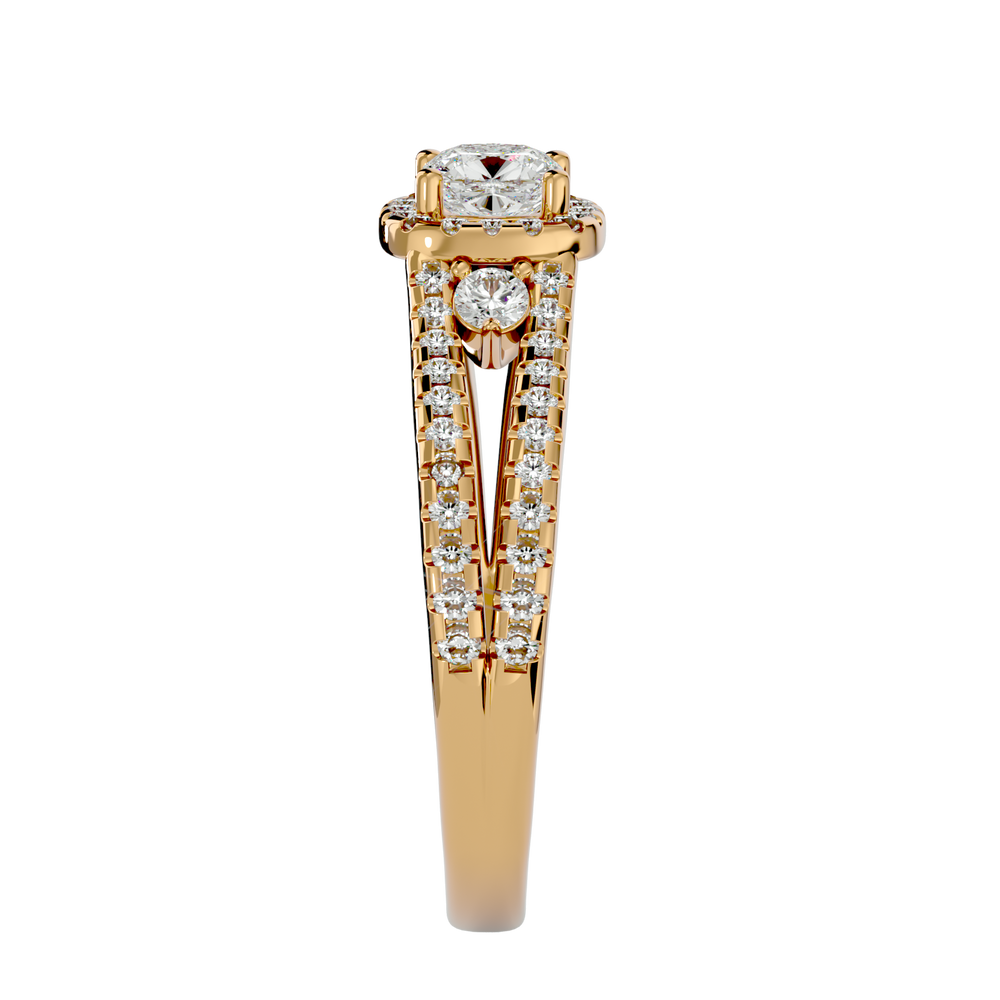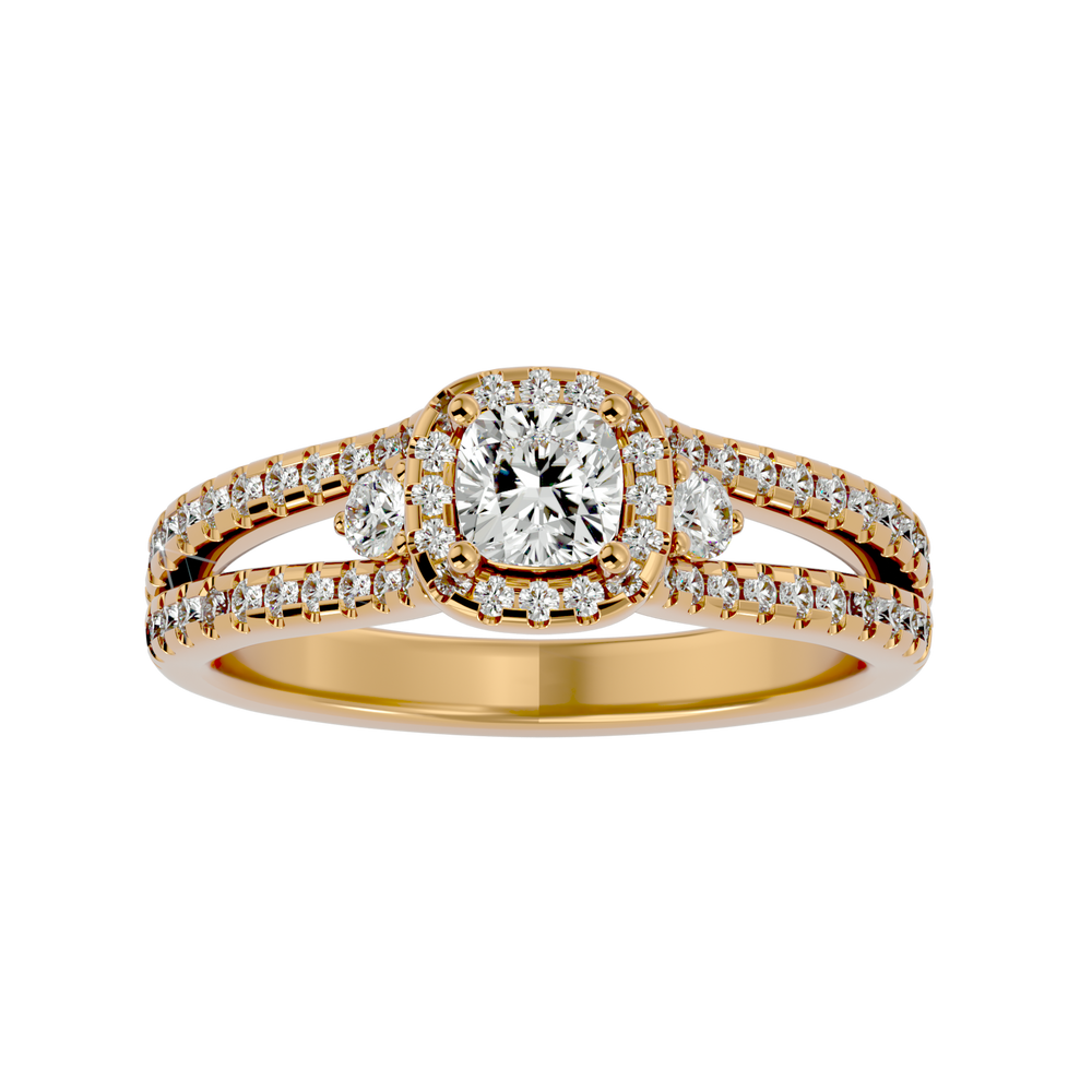 Saige Three Stone Ring brings a touch of luxury to your everyday attire, infusing it with creative elegance. Crafted with gold and diamonds, it's an ideal accessory for any occasion.